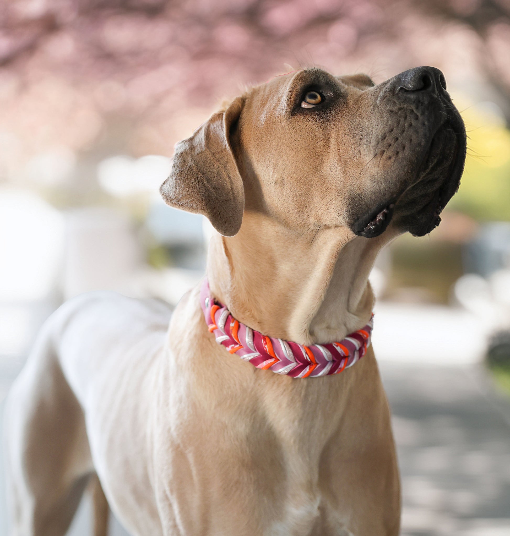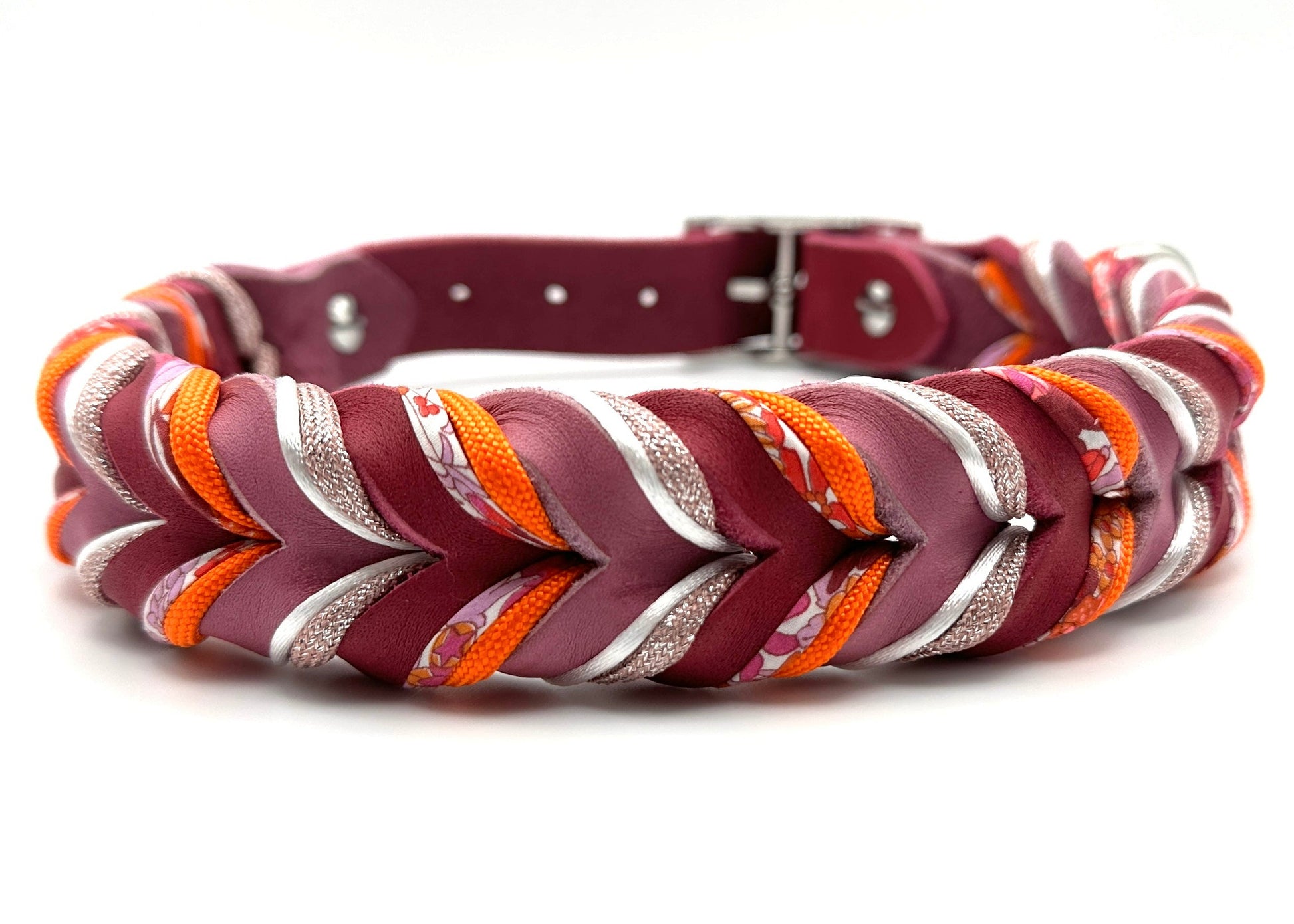 Das Halsband „Dahlia“ verbindet intensives Beerenpink mit leuchtenden Orangetönen und zarten floralen Details zu einem Look, der wirkt wie eine üppig blühende Dahlienblüte im Hochsommer. Kraftvoll, lebendig und voller Charakter.